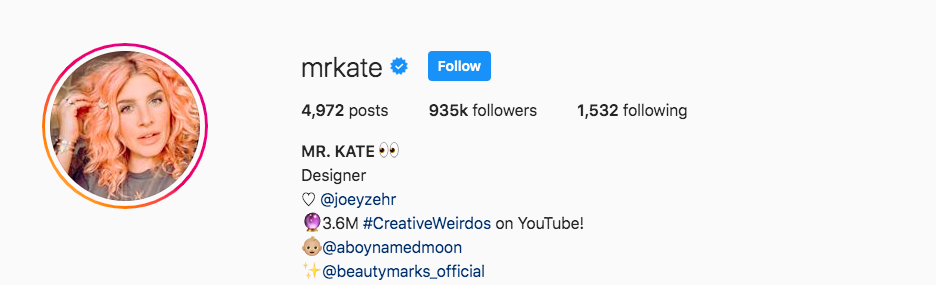 This lifestyle and DIY blog-turned-Instagram staple has 972,000 followers and more than 3.6 million subscribers on YouTube. Followers who love accessories, housewares and interior design regularly tune in to what this husband-and-wife duo share. Many want to adopt a similar “Because, why not?” lifestyle for themselves. Mr. Kate’s Insta feed is filled with candid family shots, design inspiration and product recommendations.