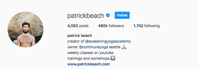 On Instagram, Beach’s personal account, @patrickbeach, has more than 480K followers. Follow the account to get information on Beach’s upcoming workshops and keep up with all the positive developments in his personal life.