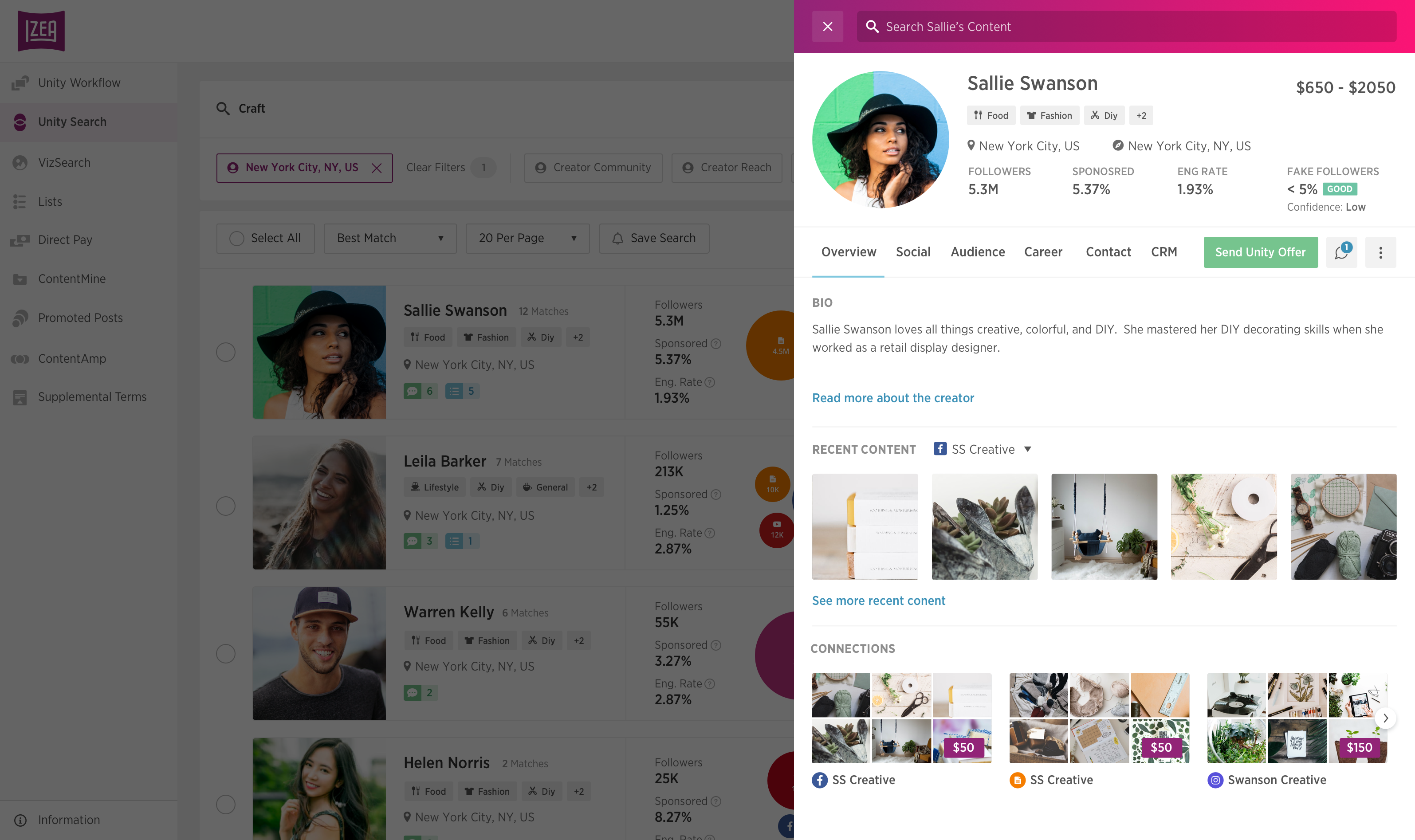 Unity Search allows you to filter through the industry’s largest 100% opt-in Creator network in a few simple clicks. You can search by a keyword or narrow down your search even further by using our customizable filters.